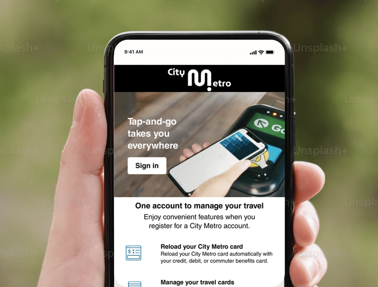City Metro operates public transportation in a major metropolitan city. It introduces a user-centric mobile app to empower users to use its new tap-and-go payment system and manage their transit spendings with ease and confidence.