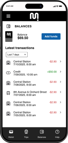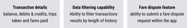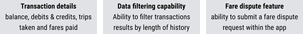 An end-to-end mobile app delivers comprehensive transit transaction details to riders.