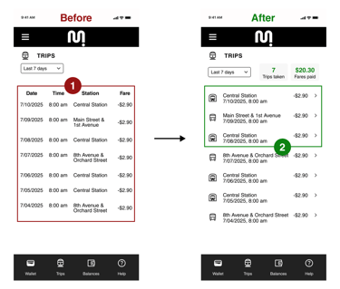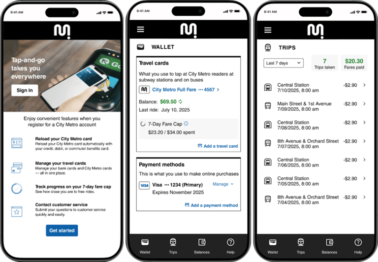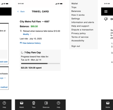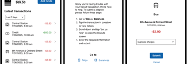 This case study showcases the creation of a transit application that supports a tap-and-go payment system. The goal is to help riders keep track of their spendings, manage their payment methods and an easy way to dispute charges as needed.